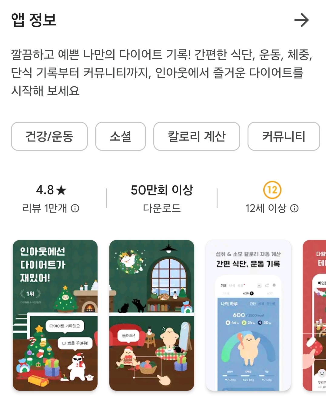 사실 너무 귀여워서 20~30대 다이어터들에게 인기가 많고 특히나 여자분들한테 인기가 많을 것 같은 어플이다.