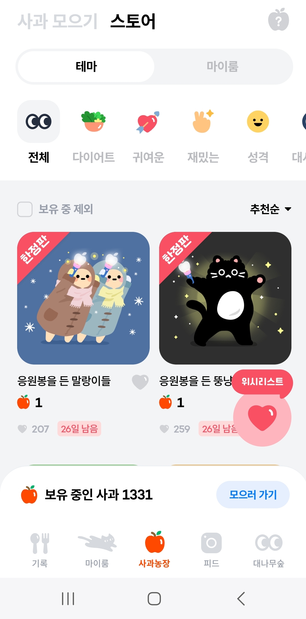 매일 출석 체크를 하면 "사과"형태의 포인트를 받을 수 있는데