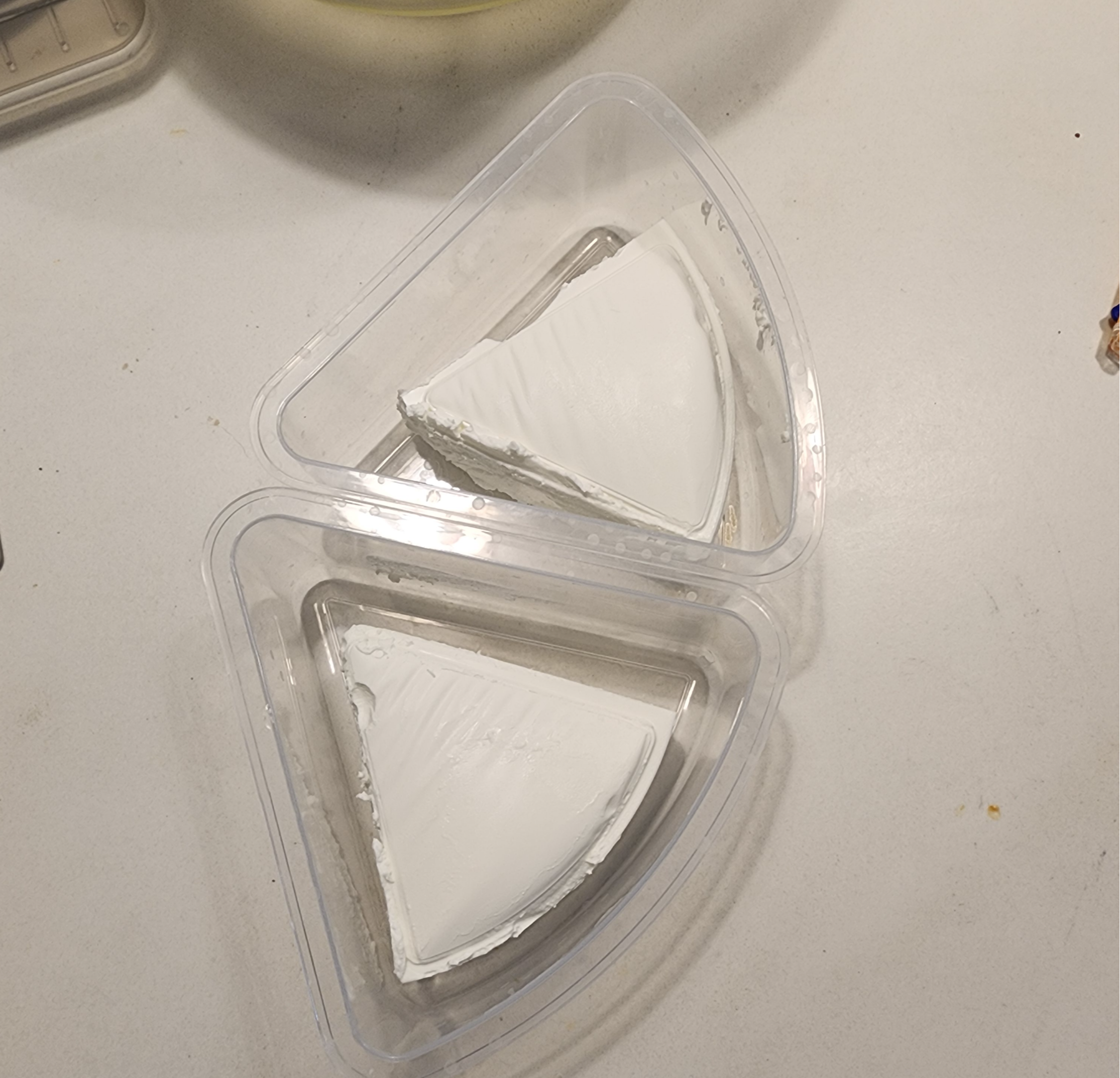케이크 모양으로 6 등분해서 플라스틱 용기에 담아두면 완성. 케이크처럼 기분내려고 세모난 용기도 샀는데