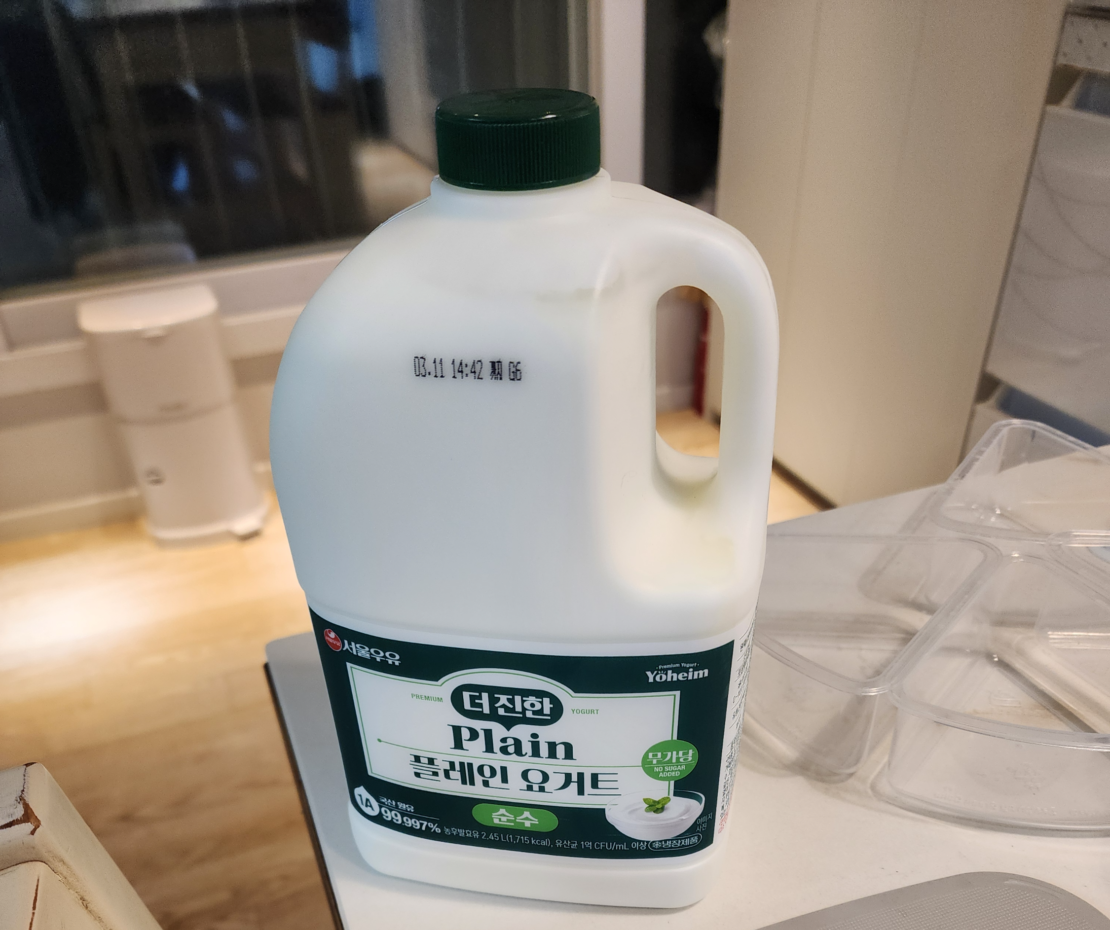 나는 서울우유 더 진한 플레인요거트 2.45 리터 짜리를 매번 이용한다 대략 가격 8000~9000원선으로